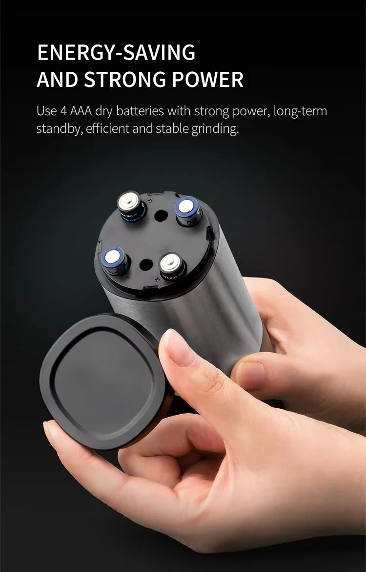 Automatic One-Touch Operation – Battery powered for hands-free grinding