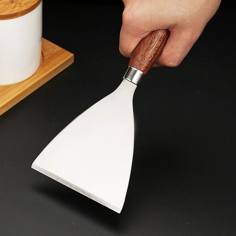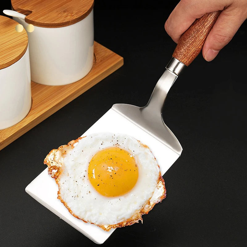 Stainless Steel Square Head Steak Cooking Spatula Pizza Shovel Pancake Beef Turner Scraper Wood Handle BBQ Utensils for Kitchen